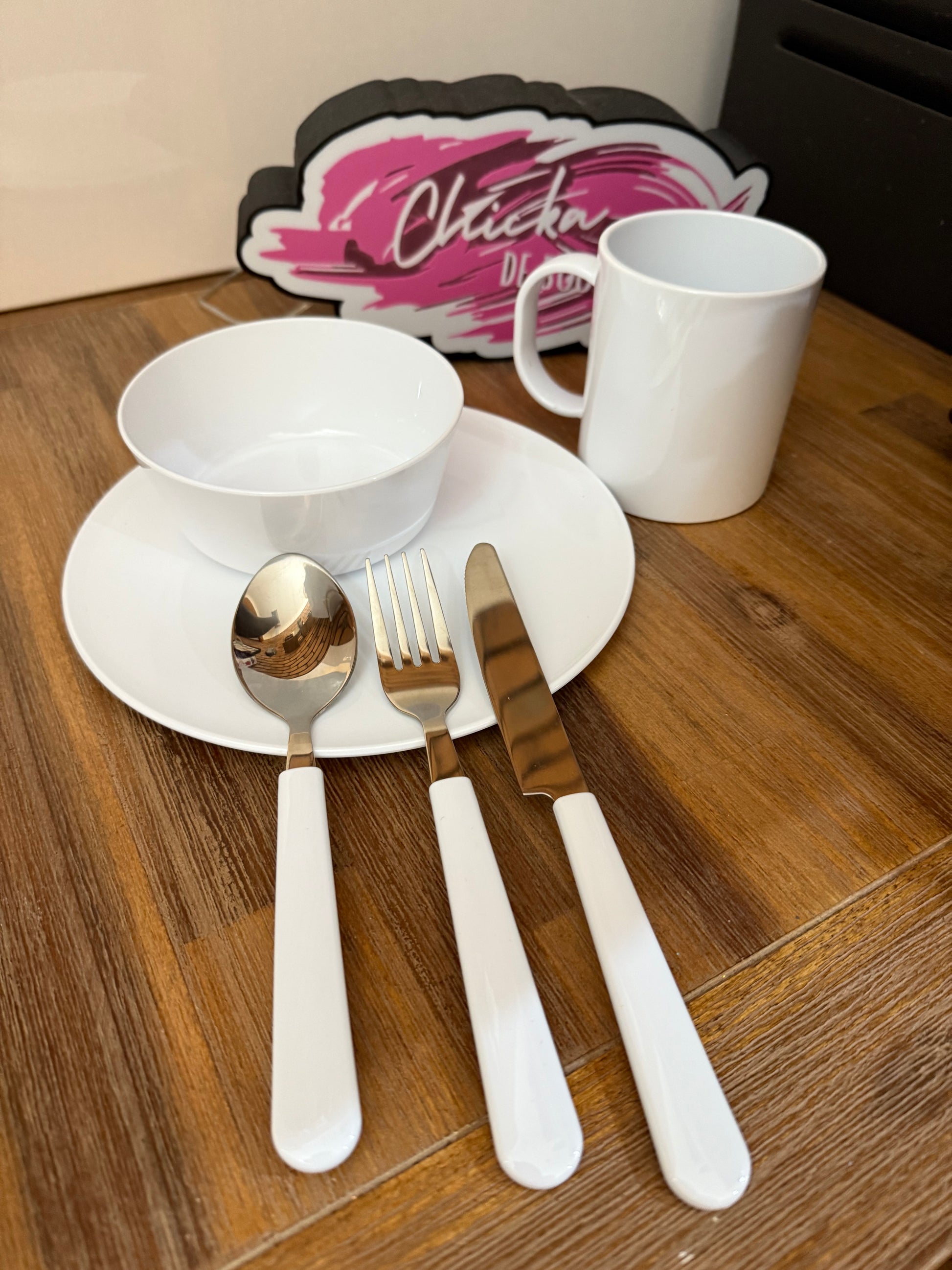 Customise with any picture or design you want on this polymer dinner set.